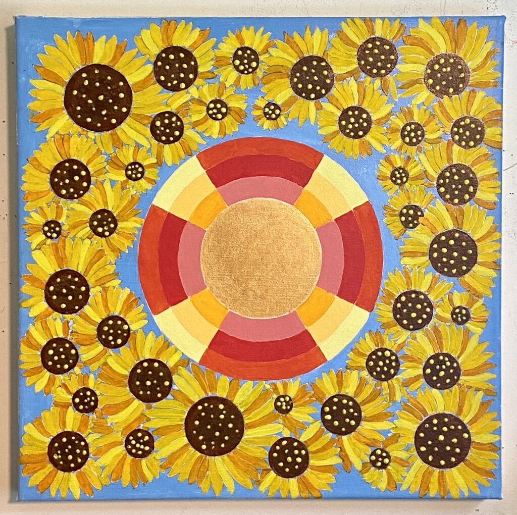Hudson’s work explores the mystical dimensions of geometric forms, particularly what she calls “Orbs”—spherical figures that serve as surrogates for cosmic energies. During the pandemic, she created a complete series of paintings depicting the 22 characters of the Major Arcana from the Tarot, which deepened her spiritual practice and understanding of these archetypes.