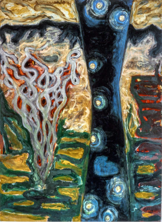 The falling light merges with the rising materiality at the kairotic point of the time cycle—where the rising materiality congeals into the falling light. A perfect light-being: transparent, luminous, yet possessing body and extension comes into play as the prelude to the Real ends, and the main event commences…